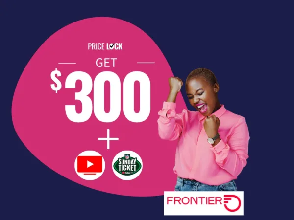 Frontier has a lot of upsides compared to the competition. With Frontier, you’ll get access to massive discounts on streaming TV services like YouTube TV. In addition, they offer competitive incentives like their $300 gift card offer to switch services.
