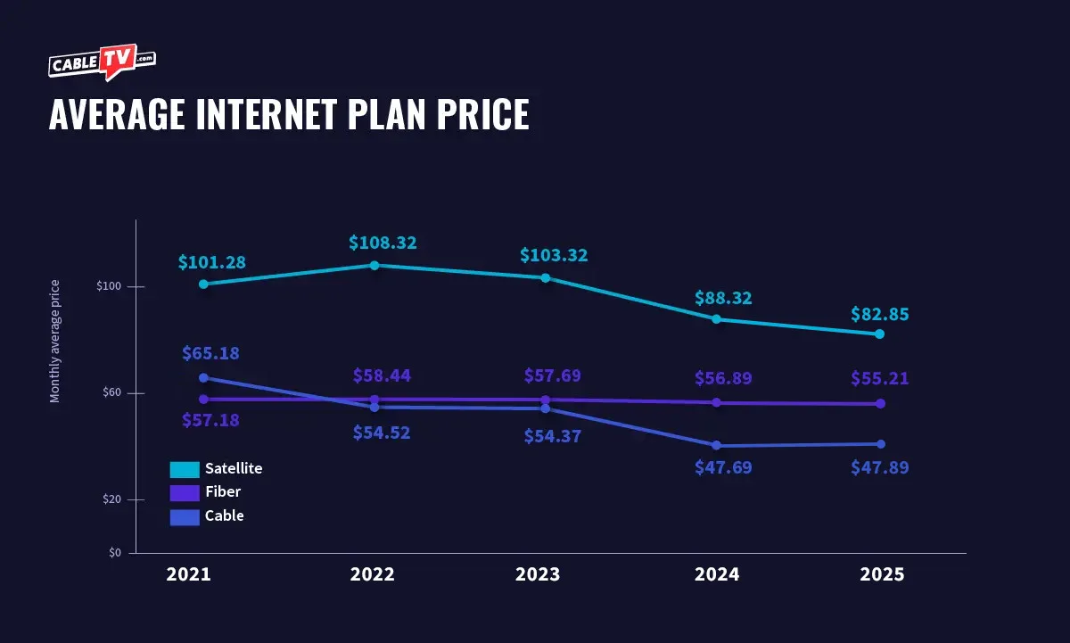 At CableTV.com, we’ve been covering home internet, cable TV, and streaming services since 2007. For this piece, we charted the prices for 71 internet plans across 24 major internet service providers (ISPs) since 2020.